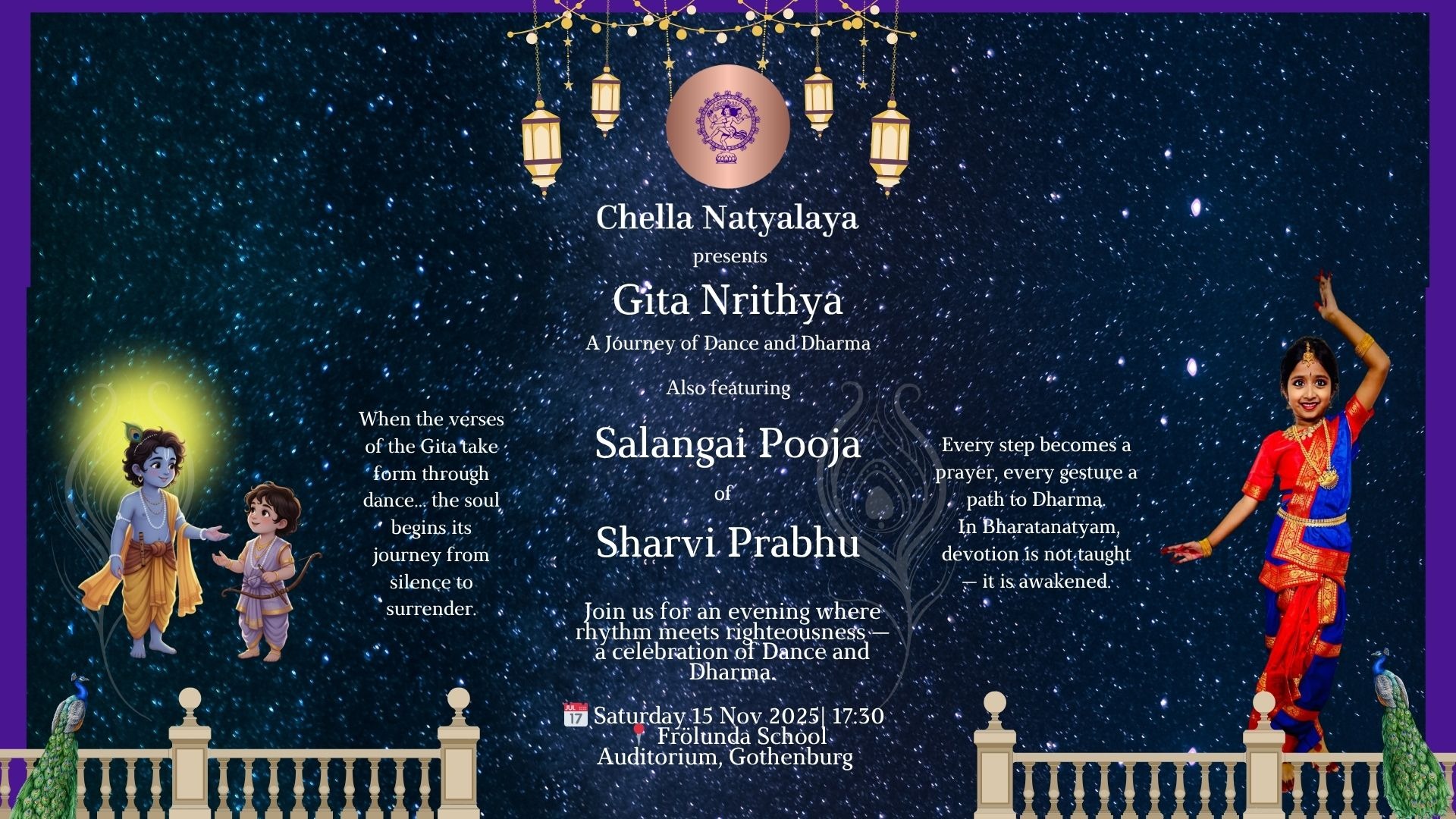 Today: Offering structured classes in Sweden and worldwide with Chella Natyalaya, guiding children on the path of dharma.